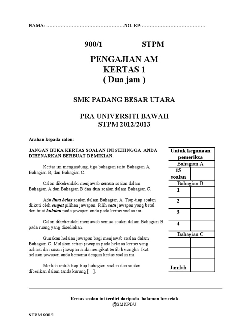 Soalan Peperiksaan Pengajian Am Penggal 1 2012 Pdf