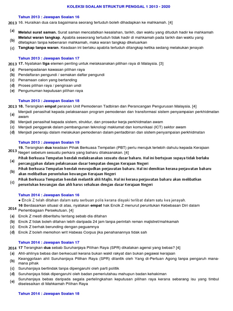 Koleksi Soalan Struktur Pengajian Am Penggal 1 Jawapan Pdf